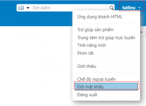 - Sau khi người dùng nhập Tài khoản đăng nhập vào Email, bấm vào tên Tài khoản Email (góc trên bên phải giao diện) chọn Thay đổi mật khẩu.